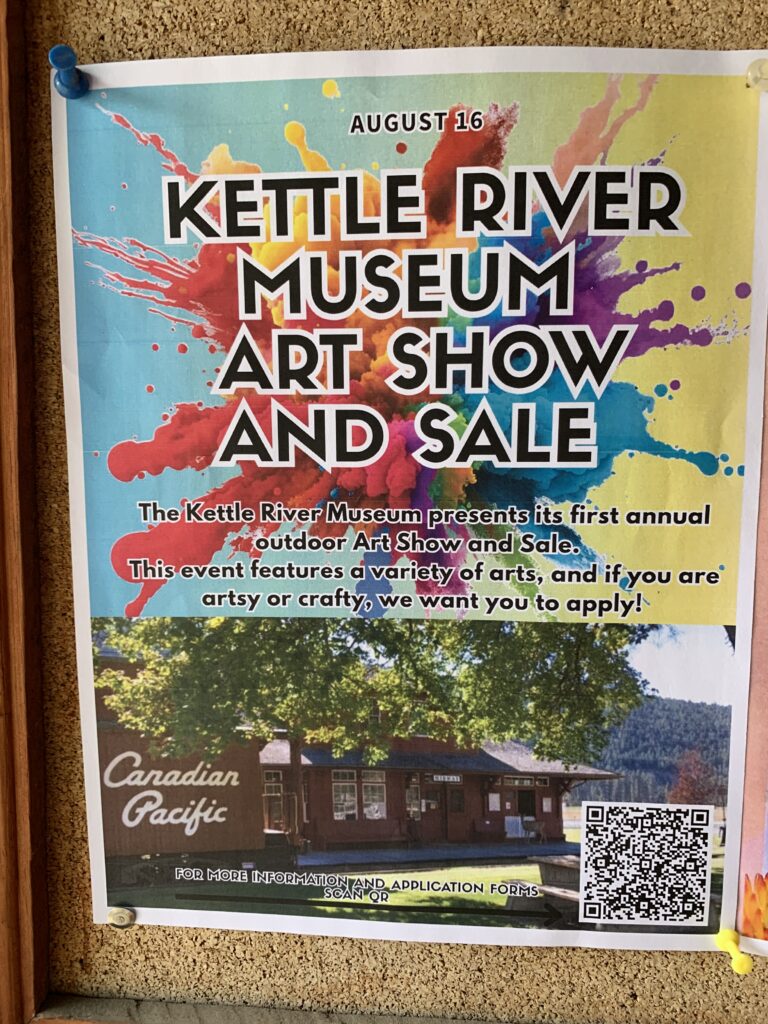 Saturday, August 16th from 10 am to 4 pm at the Kettle River Museum, come out and see what local artists and crafters have on offer. Vendors can get more information on applying by scanning the qr code on the picture.