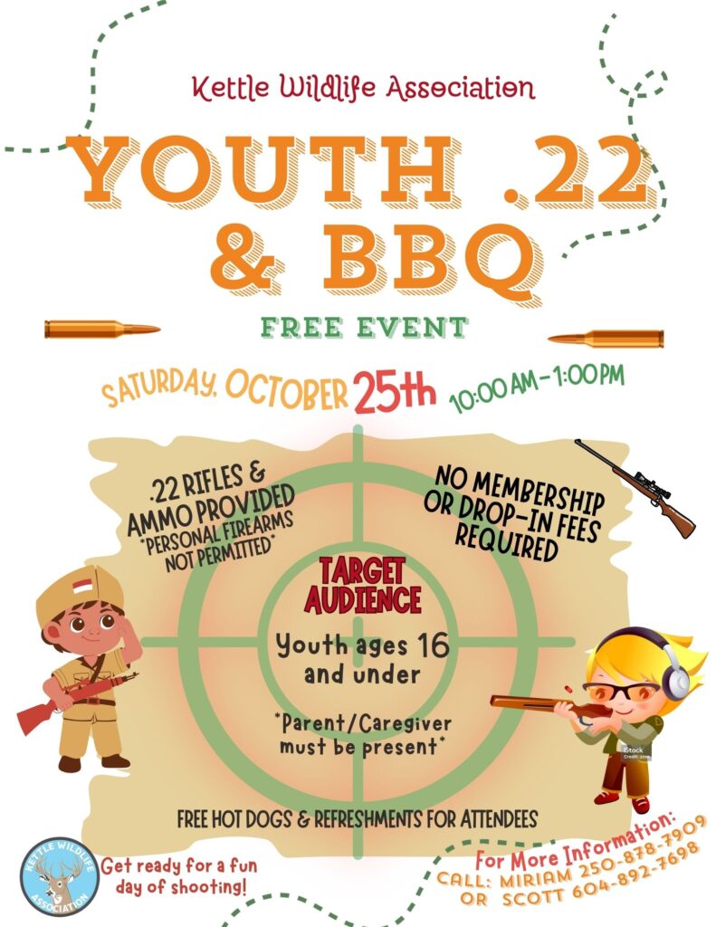 Saturday, October 25th from 10 am to 1 pm, join in the fun! Kids 16 years and under can come out and shoot .22’s, which will be provided. This event is free, a parent or guardian must be present. Hot dogs and refreshments will be provided, all are welcome.
