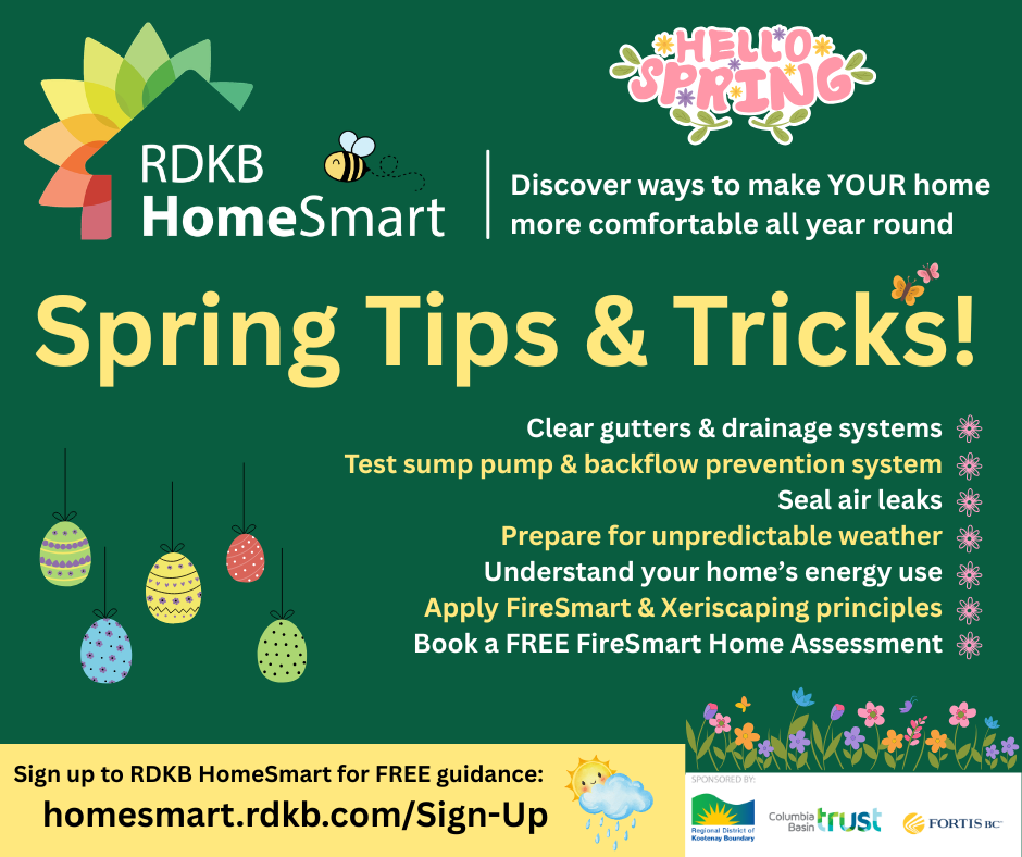 With Spring in the air, here are some Tips and Tricks from the RDKB HomeSmart team to help you maintain your home’s comfort and keep it ready for tomorrow:
