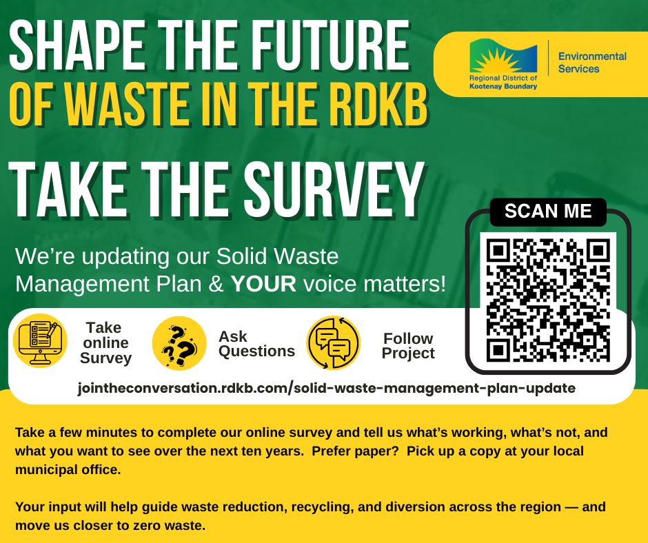 The Regional District of Kootenay Boundary is giving its Solid Waste Management Plan a major refresh – and needs YOUR voice to help shape what comes next.